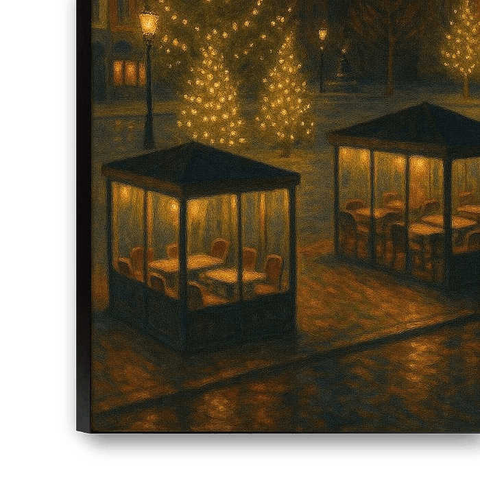 Maastricht Christmas Glow is a love letter to light itself — to its power to console, to gather, to remind us of warmth even in absence. It is not just a cityscape, but a meditation on the fragile beauty of winter nights. Inspired by Edward Hopper’s realism yet imbued with Dutch grace, it is both homage and evolution — a visual symphony of quiet joy.