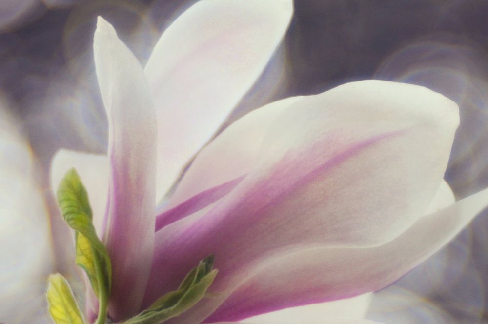 Aan foto van een magnolia gemaakt met een speciale bokeh lens.