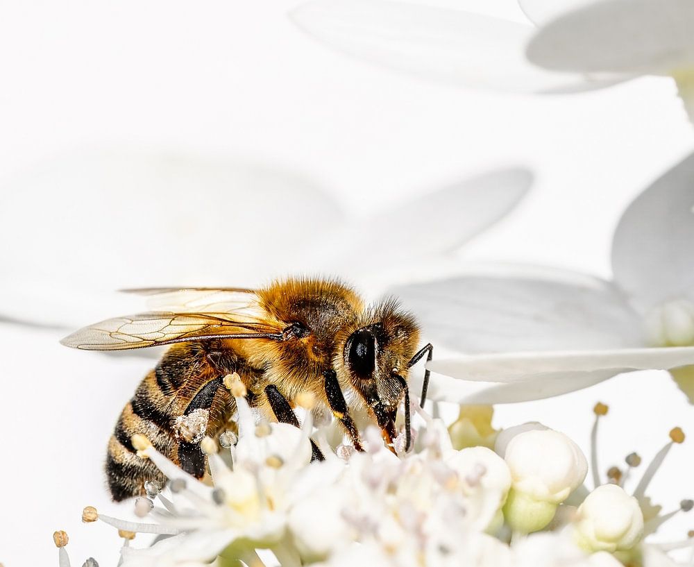 Macro of a bee on a hydrangea flower by ManfredFotos