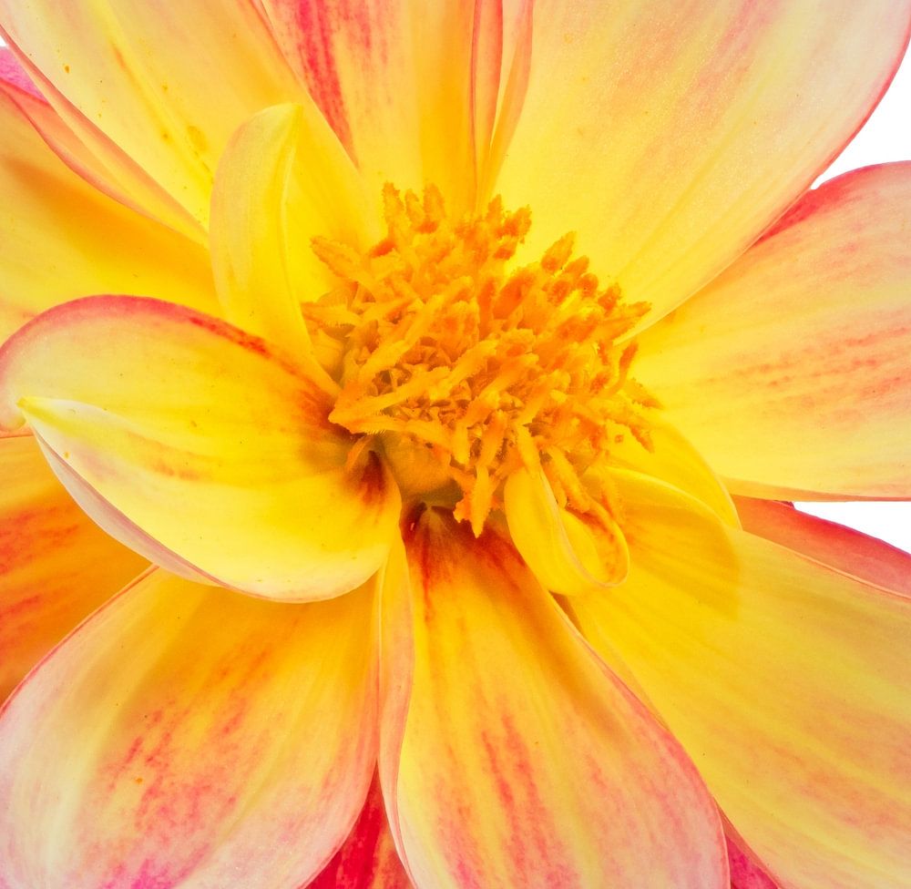 Buy this flower art Macro of a dahlia flower on white background by ManfredFotos on canvas, ArtFrame, poster and wallpaper, printed on demand in high quality.