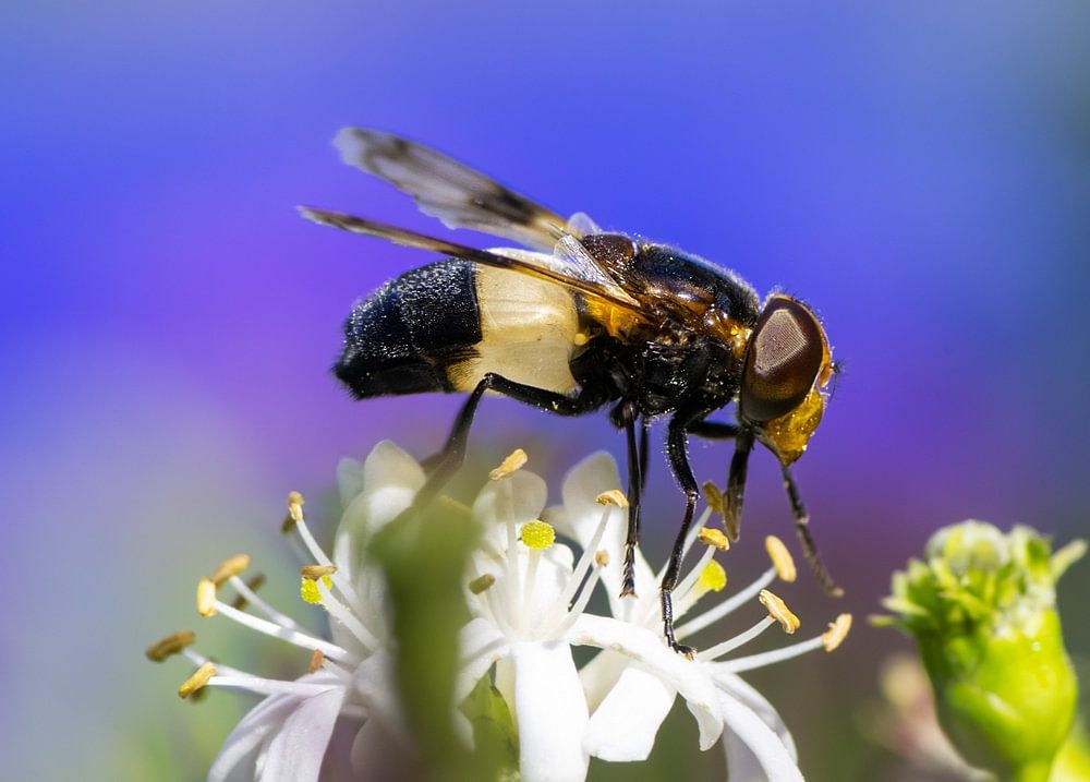 Buy this flower art Macro of a forest hoverfly by ManfredFotos on canvas, ArtFrame, poster and wallpaper, printed on demand in high quality.