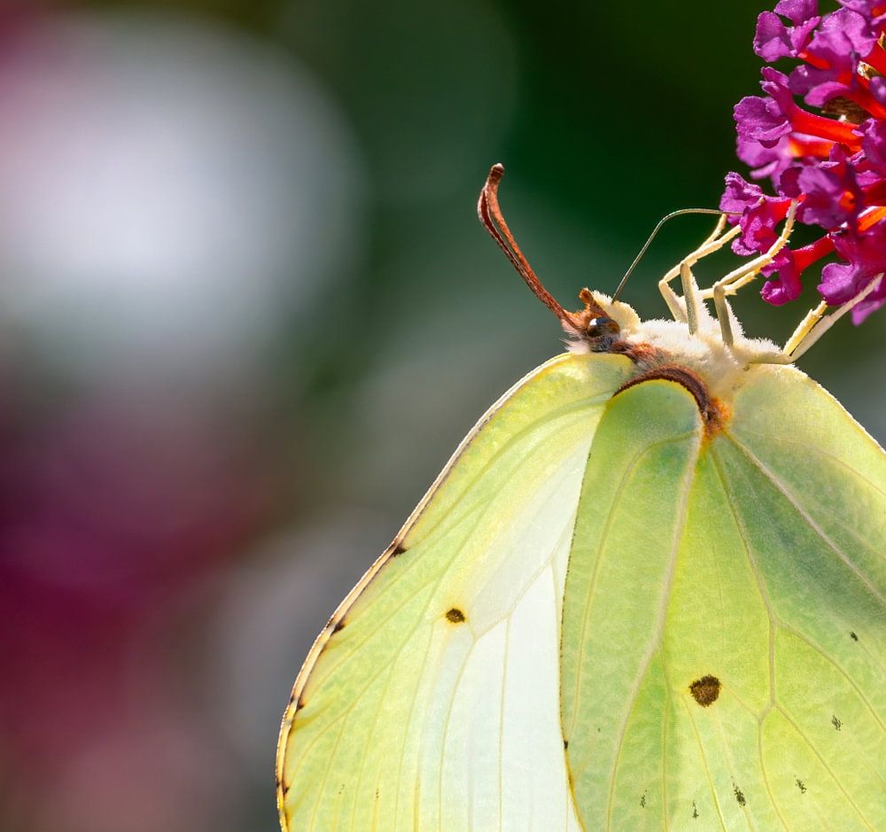 Macro of a lemon butterfly on a summer lilac flower