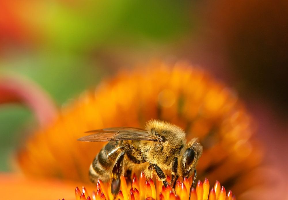 Macro photo of a coneflower and a bee. Taken in my garden which I try to make as bee friendly as possible. Save the bees!