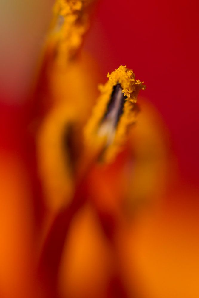 From this close up, the heart of a flower becomes a magical world. Each pollen grain is precious and waiting to be collected by visiting insects. Longing for the sun and in a fiery blaze of colour that no bee can resist.
