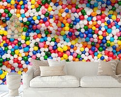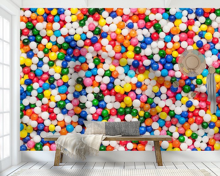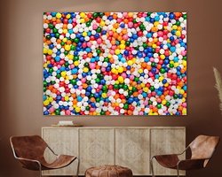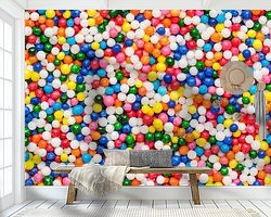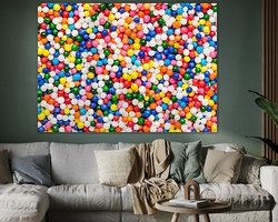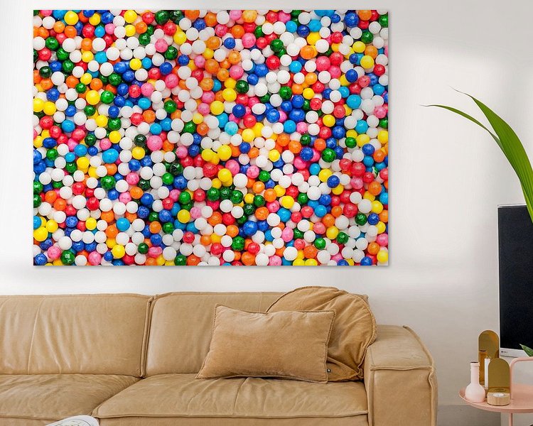 Macro photograph of coloured disco dip sprinkles. These coloured sprinkles are used to decorate food and snacks like pies, icecream and cakes. Children love it! This photograph was created with a macro lens in order to enlarge the little coloured balls.