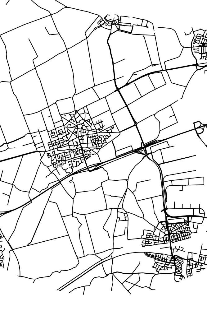 Black and white map, street map or street plan of Made. Made is located in the municipality of Drimmelen, province of North Brabant. On the city map all public roads in Made are included. Furthermore, the map features the coordinates of the center of Made.