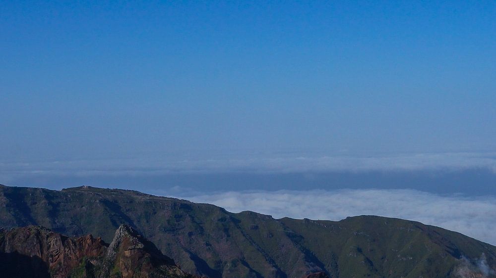 Madeira - Mountain Pico do Arieiro with red rocks and clouds beneath panorama landscape view with blue sky by adventure-photos