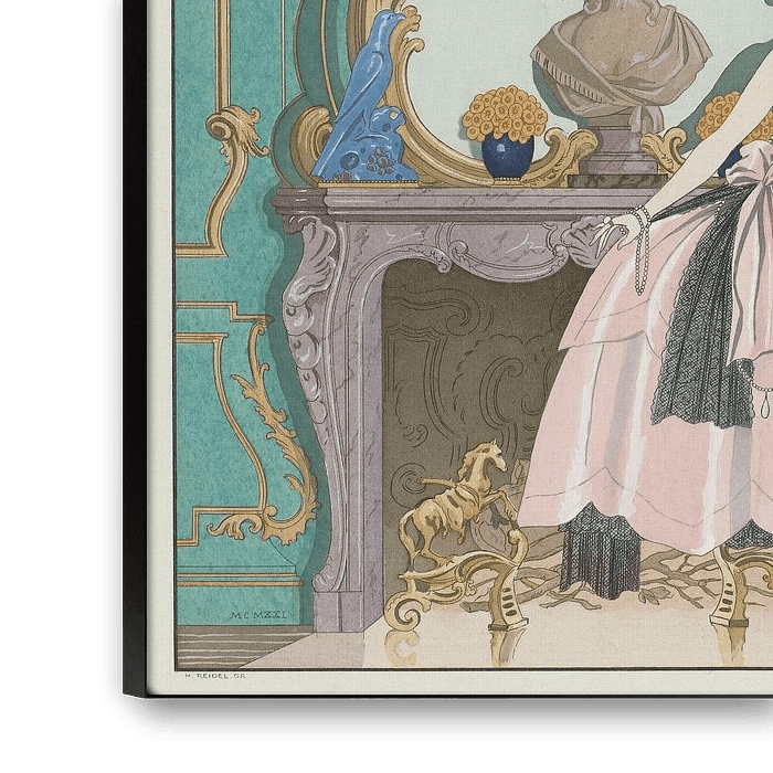 Buy Mademoiselle Sorel in full dress, George Barbier as a reproduction on canvas, ArtFrame, poster and wallpaper, printed on demand in high quality.