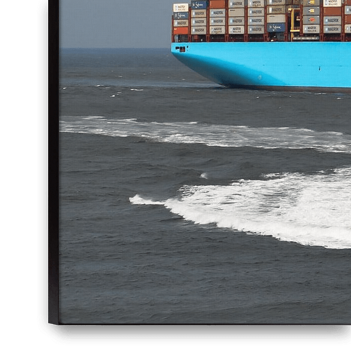 One of the largest container ships in the world in the Port of Rotterdam. The crazy colours of the ship combined with the current behind the KNRM boat complete the picture.