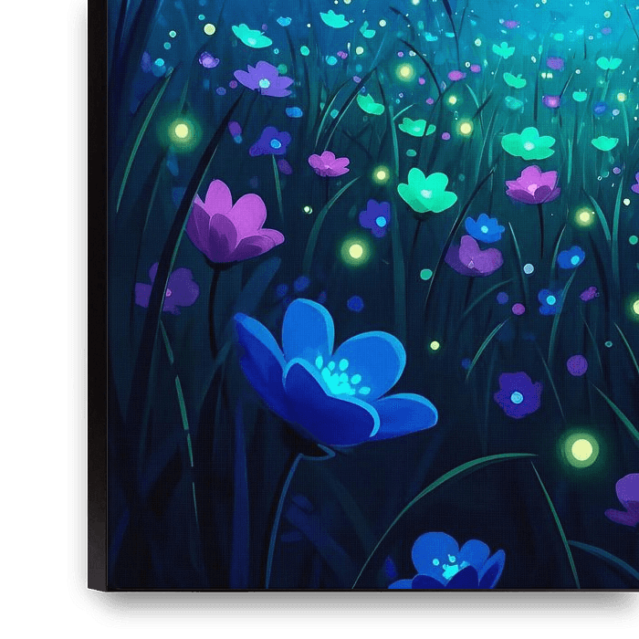 Buy this digital art artwork Magical Night Meadow with Glowing Flowers by DNArt Gallery's as a reproduction on canvas, ArtFrame, poster and wallpaper, printed on demand in high quality.