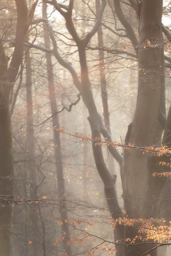 When the first rays of sun see through the trees you get this magical light. The last leaves of the trees are beautifully lit.