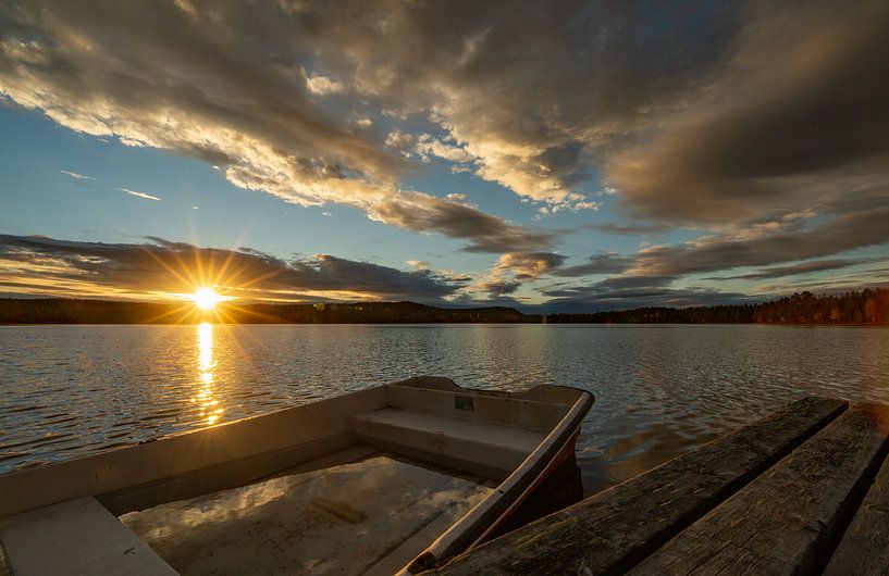 Buy this landscape artwork Magical sunset on a Swedish lake in autumn light by Fototante on canvas, ArtFrame, poster and wallpaper, printed on demand in high quality.