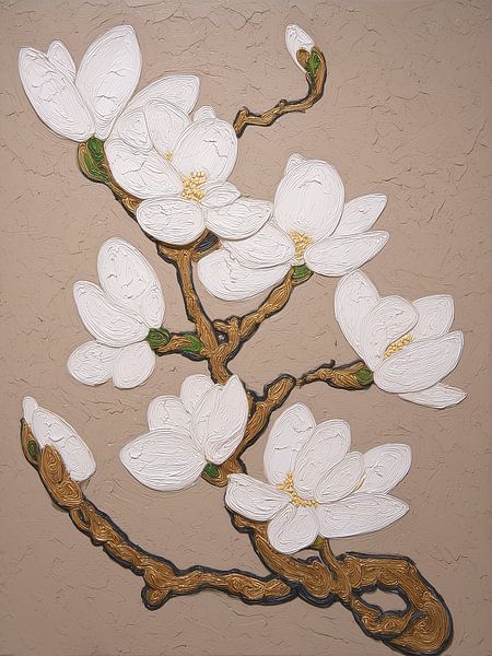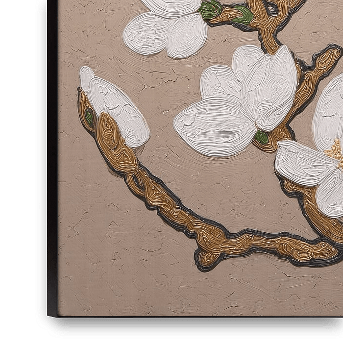 Buy this landscape artwork Magnolia in Relief – Timeless Blossom by Thea on canvas, ArtFrame, poster and wallpaper, printed on demand in high quality.