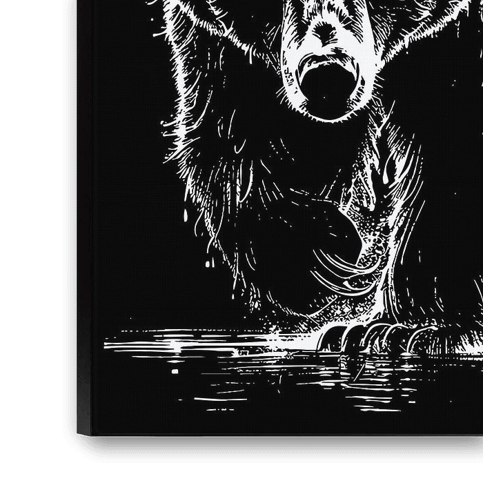 Bring the wild beauty of the forest into your home with this majestic bear wall art. Featuring a hyper-realistic bear illuminated in striking white and silver tones against a deep black background, this piece adds bold, nature-inspired elegance to any space. Perfect for rustic cabins, modern interiors, and wildlife enthusiasts, available in canvas, metal, and acrylic prints.