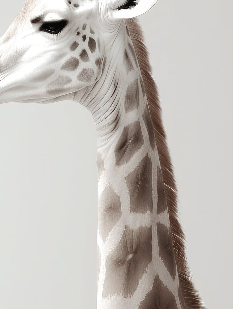 This simple fine art print of a giraffe exudes the majestic beauty of these animals. The soft tones and sharp lines create a minimalist, yet striking image of the giraffe, perfect for any modern decor. The subtle details of the fur and the giraffe's distinctive long neck make this print a real eye-catcher. For questions feel free to contact us!