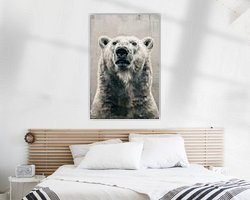 This powerful art image captures the imposing beauty of a polar bear in an abstract-realist style. The soft white and grey tones bring the texture of the fur to life, while the neutral background emphasises the animal's impressive gaze. The subtle splashes and brushstrokes add dynamism to the composition, creating a sense of depth and intensity. A perfect artwork for lovers of wildlife and contemporary art, ideal to exude calm and strength in a modern interior.