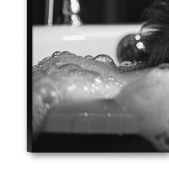 This imposing bathroom artwork depicts a majestic lion resting calmly in its bath, adding an impressive atmosphere to your toilet. The black and white photography captures the sublime presence of the lion and emphasises the details of the scene, making it a fascinating and unique addition to your bathroom decor. Perfect for brightening up your toilet or bathroom, it's a reminder that even the kings of the savannah can enjoy moments of rest and relaxation. This modern bathroom mural series offers stylish decoration that will not only inspire awe, but also add a powerful and majestic touch to your bathroom. Bring an atmosphere of strength and grandeur to your WC with this imposing work of art and be inspired by its splendour.