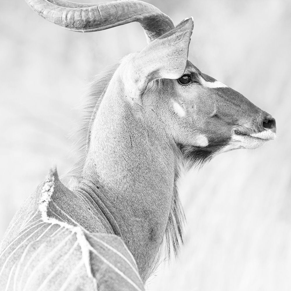 What a majestic beast is the kudu! This male was out walking with his harem in the afternoon when the sun was setting. Actually, male kudus generally live in bachelor groups, or, more often, solitarily.