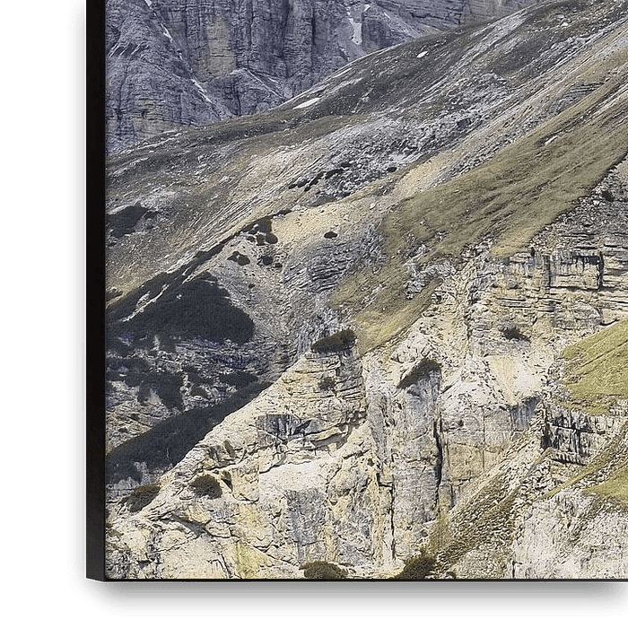 Spectacular mountain photo of the famous Three Peaks in the Dolomites - a timeless motif for all mountain lovers. Clear structures, impressive rock faces and the unmistakable alpine backdrop make this picture the highlight of any wall.