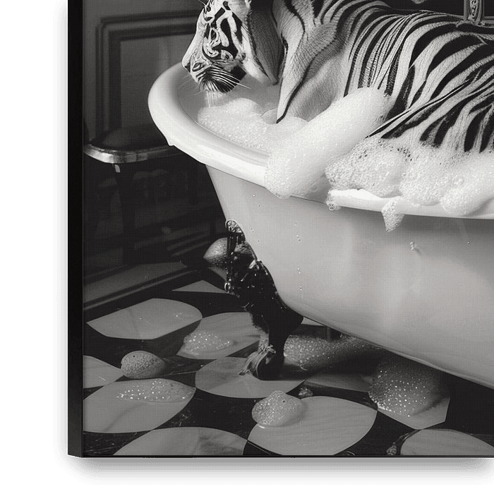 Buy the photo Majestic tiger in the bathtub - An impressive bathroom picture for your toilet by Poster Art Shop on canvas, ArtFrame, poster and wallpaper, printed on demand in high quality.