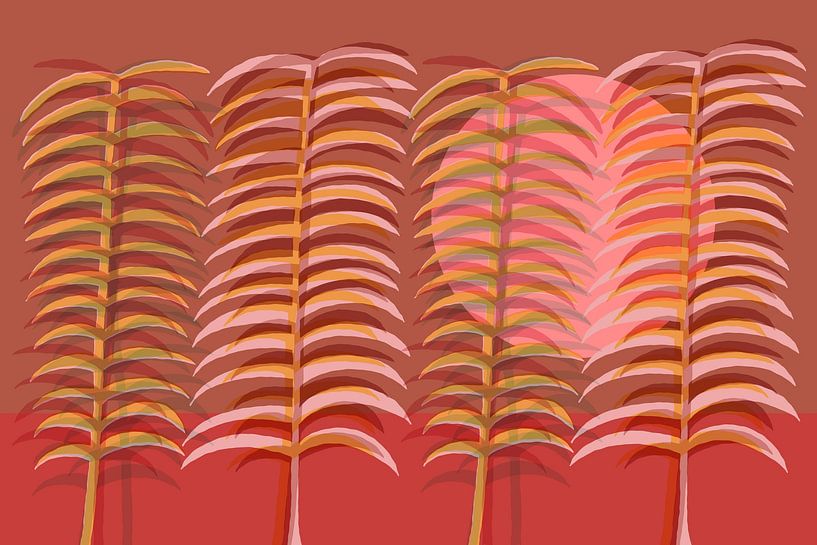 Buy this abstract artwork Malaga parque pink sun by Cornelie de Haan on canvas, ArtFrame, poster and wallpaper, printed on demand in high quality.