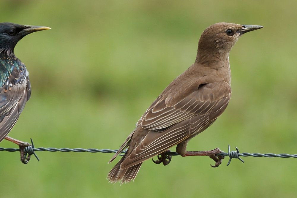 This bird pairs Starlings on an iron wire in nature, the male Starling beautiful in colour and the female Starling beautiful brown in colour