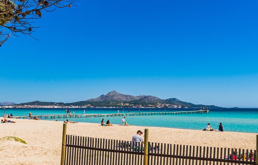 Mallorca sand beach at beautiful bay of Alcudia, Can Picafort, Platja de Muro, Spain Balearic islands