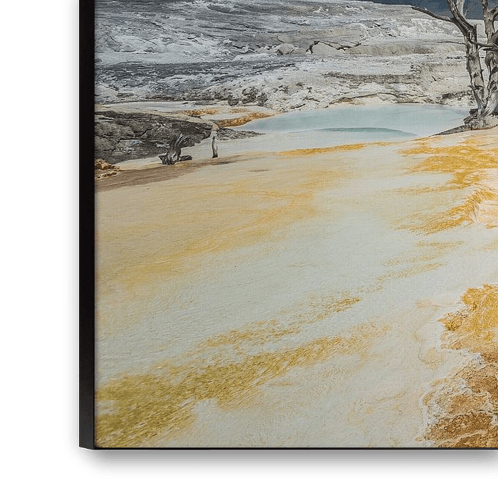 Buy this landscape artwork Mammoth Hot Springs Yellowstone by Harold van den Hurk on canvas, ArtFrame, poster and wallpaper, printed on demand in high quality.