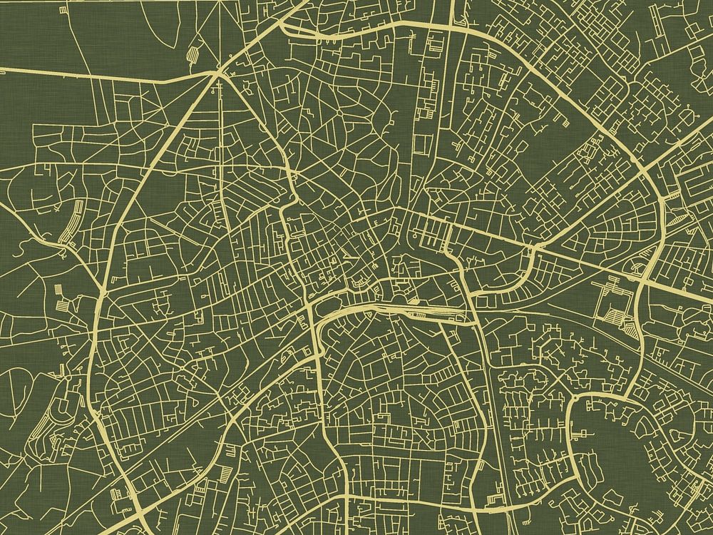 Explore Apeldoorn with this map in our Green Gold style. The golden yellow roads contrast against a green background. Combined with a subtle linen texture, this map adds a touch of refinement and tranquility to any space where it is displayed.
