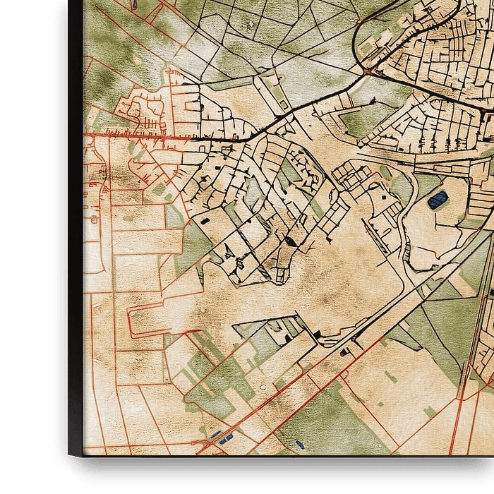 This map of Celle features our custom style “Serene Summer”. This style is characterised by the warm, sun-drenched earthy tones. The color palette is inspired by the Art Nouveau style of the turn of the century. This map of Celle gives your interior a classic, modern look.