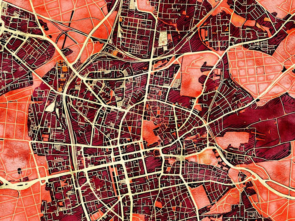 This map of Darmstadt has our custom made style “Amber Autumn". It's got the natural colours of the season, inspired by autumn leaves. The earthy tones of this map of Darmstadt will give your interior a warm look.