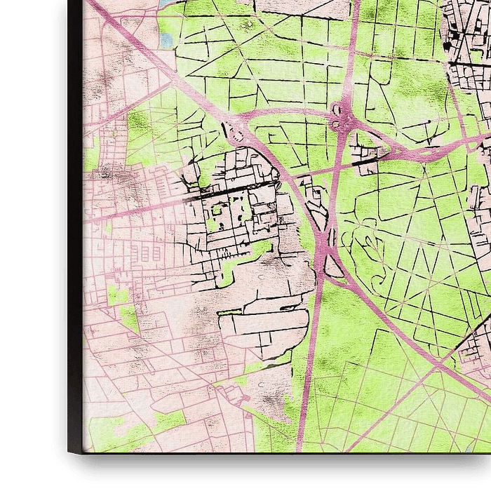 This map of Darmstadt has our custom style “Soothing Spring”. This style is inspired by Japanese drawings of colorful cherry blossoms. With its vibrant colours, this map of Darmstadt will bring your room to life.
