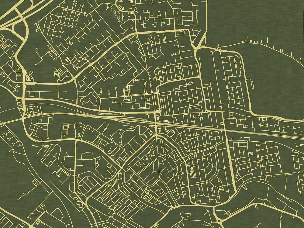 Explore Gouda with this map in our Green Gold style. The golden yellow roads contrast against a green background. Combined with a subtle linen texture, this map adds a touch of refinement and tranquility to any space where it is displayed.