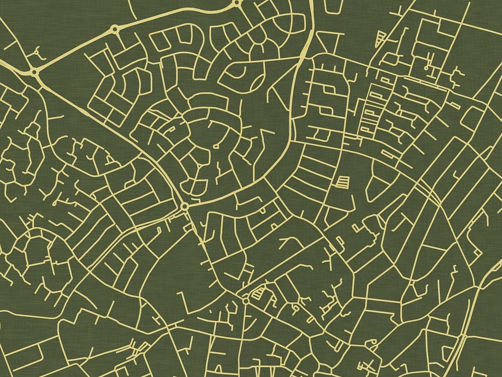 Explore Haaksbergen with this map in our Green Gold style. The golden yellow roads contrast against a green background. Combined with a subtle linen texture, this map adds a touch of refinement and tranquility to any space where it is displayed.