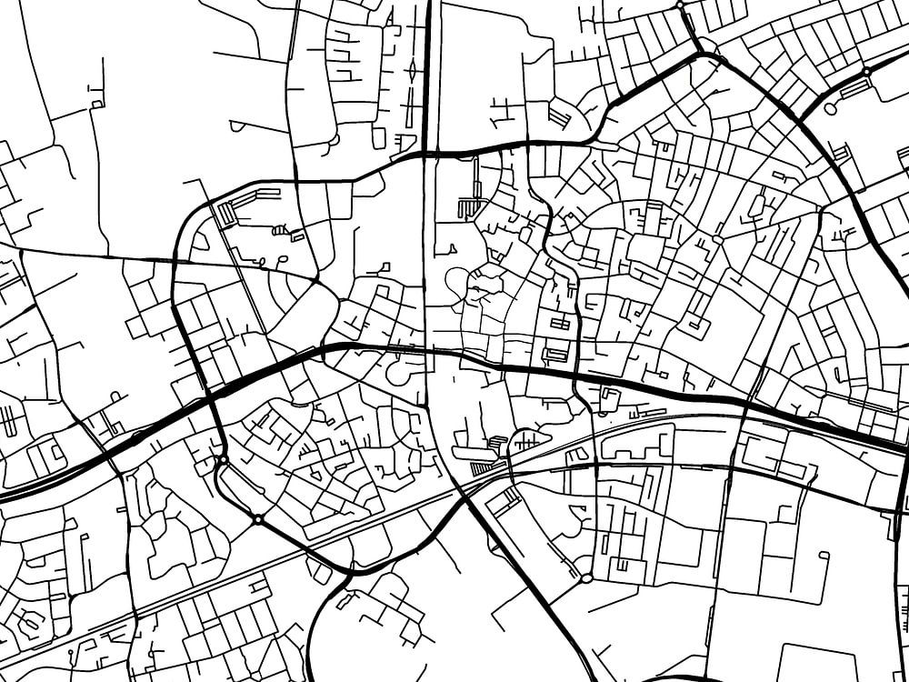 The map of Helmond with a white background and black roads