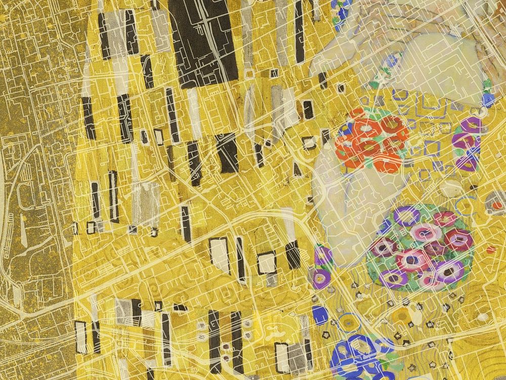 The map of Hoorn is integrated into the painting The Kiss by Gustav Klimt. Whether you have a modern apartment or a classic house, this artwork brings the beauty of Hoorn into your interior and adds an artistic touch to your space.
