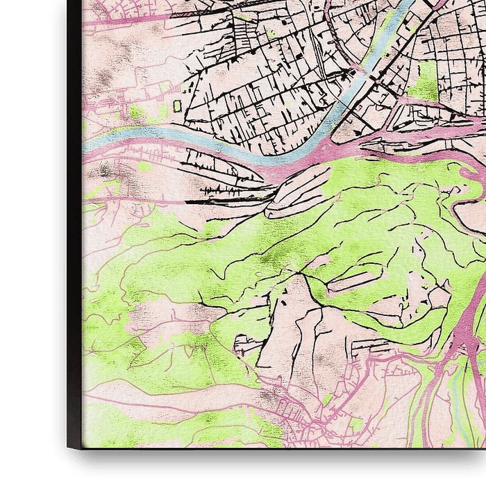 This map of Innsbruck has our custom style “Soothing Spring”. This style is inspired by Japanese drawings of colorful cherry blossoms. With its vibrant colours, this map of Innsbruck will bring your room to life.