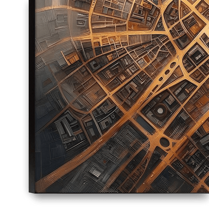 Lose yourself in the sparkling charm of London with this cheerful abstract piece, in which shimmering gold and warm browns transform the city's map into a celebration of colour and joy. Hang it up and let your imagination run wild as you wander London's vibrant streets.
