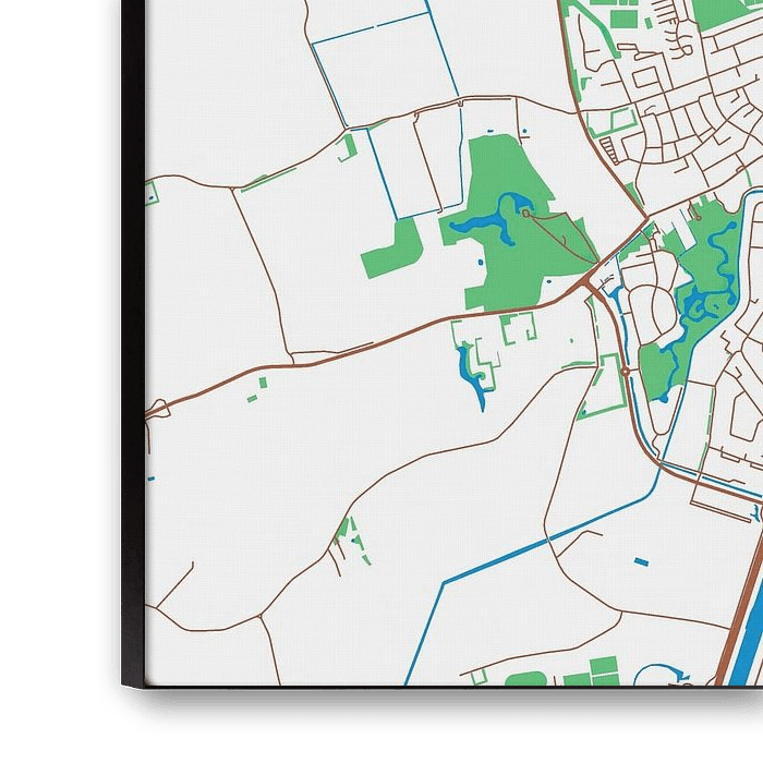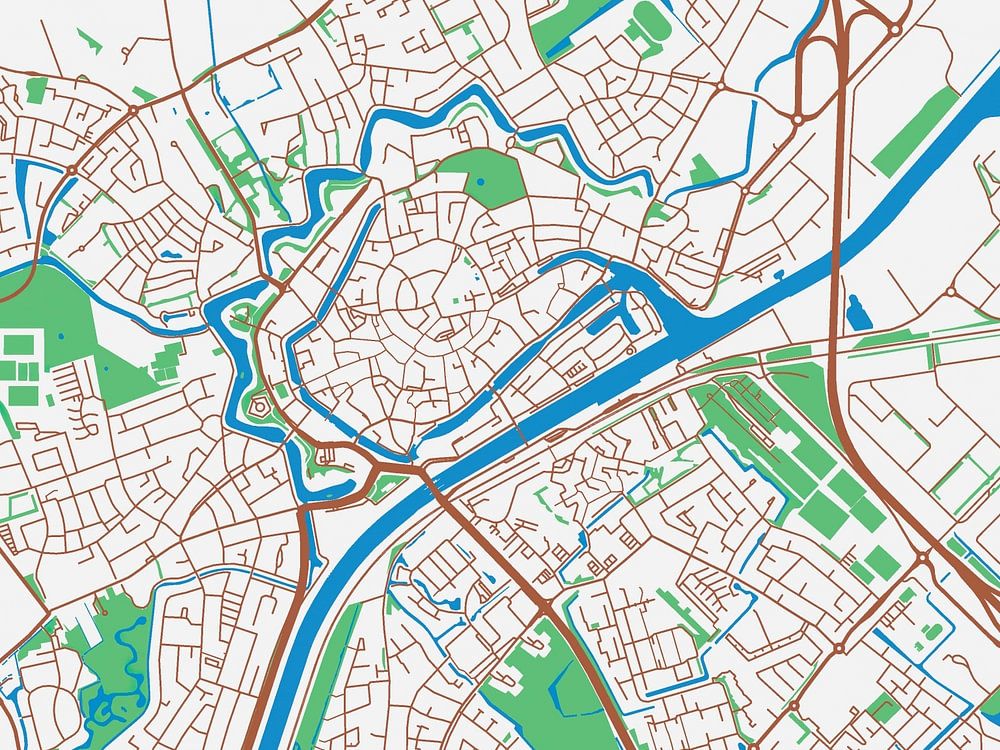Explore Middelburgwith this map in the style of Urban Ivory. With a color palette consisting of white, red, green, and blue, this map brings Middelburg to life. Each element on the map has been carefully chosen and given a traditional color, making them stand out against the bright white background.