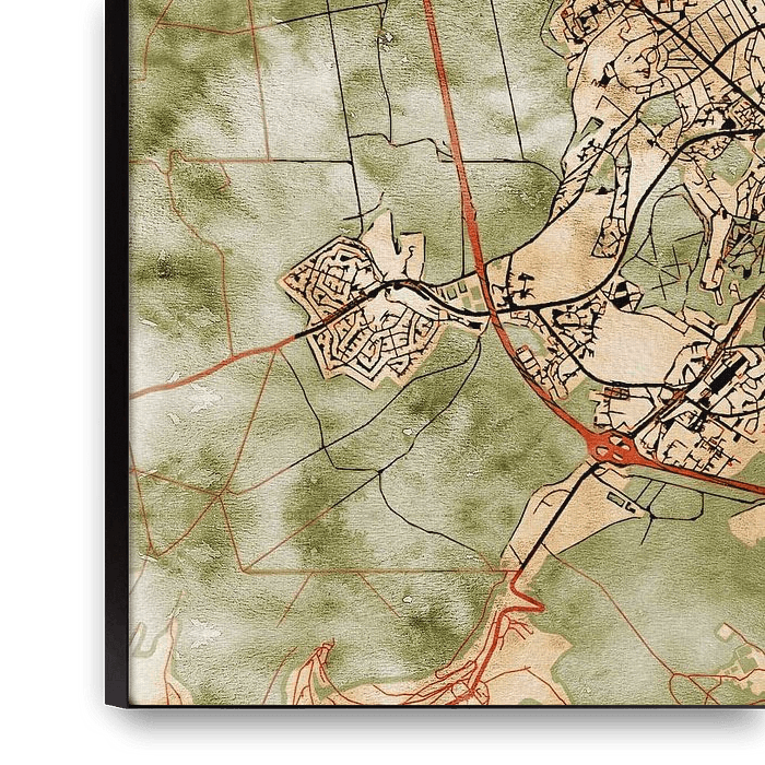 This map of Nancy features our custom style “Serene Summer”. This style is characterised by the warm, sun-drenched earthy tones. The color palette is inspired by the Art Nouveau style of the turn of the century. This map of Nancy gives your interior a classic, modern look.