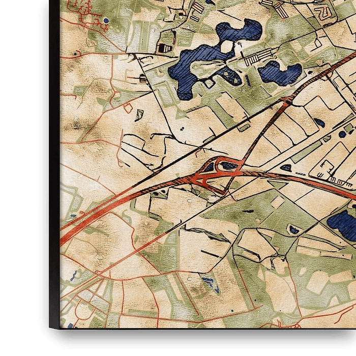 This map of Oldenzaal features our custom style “Serene Summer”. This style is characterised by the warm, sun-drenched earthy tones. The color palette is inspired by the Art Nouveau style of the turn of the century. This map of Oldenzaal gives your interior a classic, modern look.