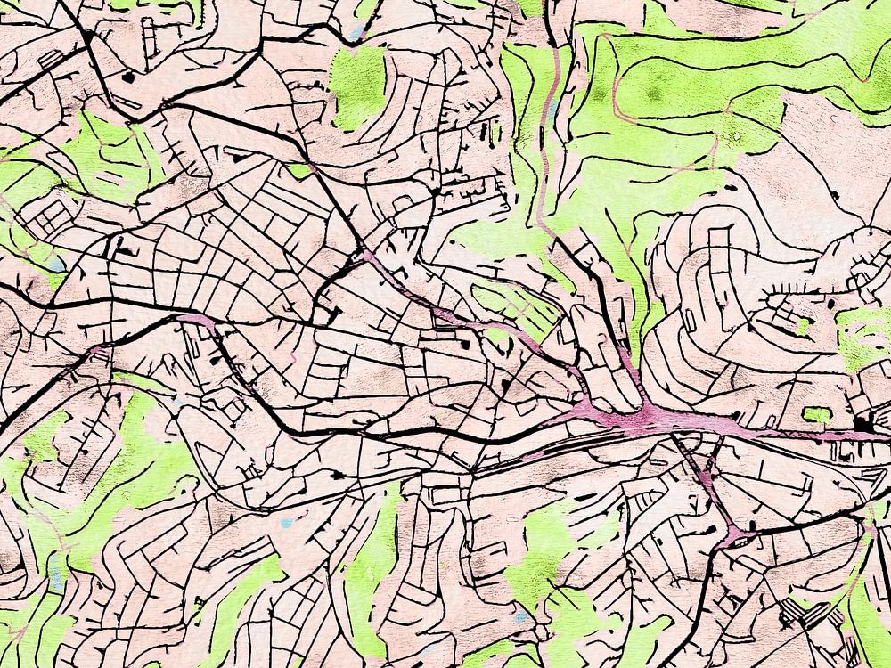 This map of Remscheid has our custom style “Soothing Spring”. This style is inspired by Japanese drawings of colorful cherry blossoms. With its vibrant colours, this map of Remscheid will bring your room to life.
