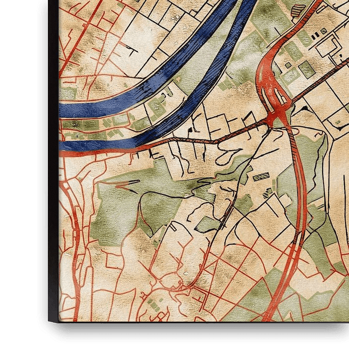 This map of Rueil-Malmaison features our custom style “Serene Summer”. This style is characterised by the warm, sun-drenched earthy tones. The color palette is inspired by the Art Nouveau style of the turn of the century. This map of Rueil-Malmaison gives your interior a classic, modern look.