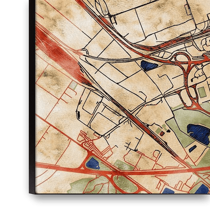 This map of Rüsselsheim am Main features our custom style “Serene Summer”. This style is characterised by the warm, sun-drenched earthy tones. The color palette is inspired by the Art Nouveau style of the turn of the century. This map of Rüsselsheim am Main gives your interior a classic, modern look.