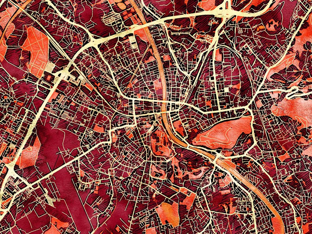 At Maporia we straddle the border between art and cartography. We reshape visualisations of geographic data to create art using various image processing techniques including artificial intelligence.