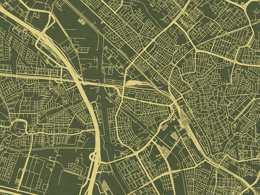 Explore Utrecht with this map in our Green Gold style. The golden yellow roads contrast against a green background. Combined with a subtle linen texture, this map adds a touch of refinement and tranquility to any space where it is displayed.