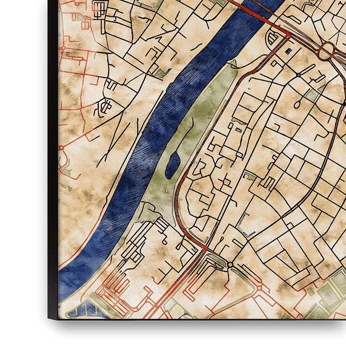 This map of Venlo centrum features our custom style “Serene Summer”. This style is characterised by the warm, sun-drenched earthy tones. The color palette is inspired by the Art Nouveau style of the turn of the century. This map of Venlo centrum gives your interior a classic, modern look.