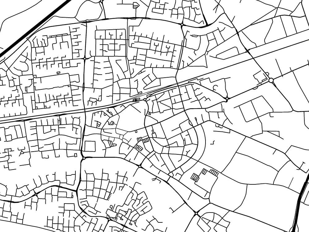 The map of Wijchen with a white background and black roads