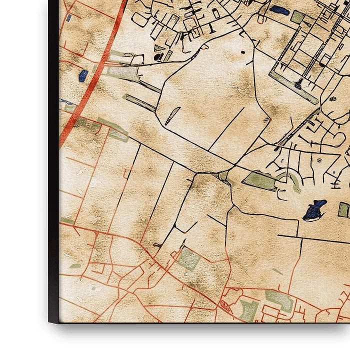 This map of Willich features our custom style “Serene Summer”. This style is characterised by the warm, sun-drenched earthy tones. The color palette is inspired by the Art Nouveau style of the turn of the century. This map of Willich gives your interior a classic, modern look.