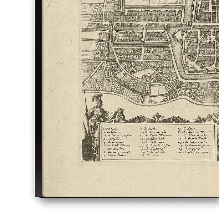 Buy Map of the city of Utrecht with city view, Johannes Jacobsz van den Aveele, ca. 1700 - ca. 1710 as a reproduction on canvas, ArtFrame, poster and wallpaper, printed on demand in high quality.